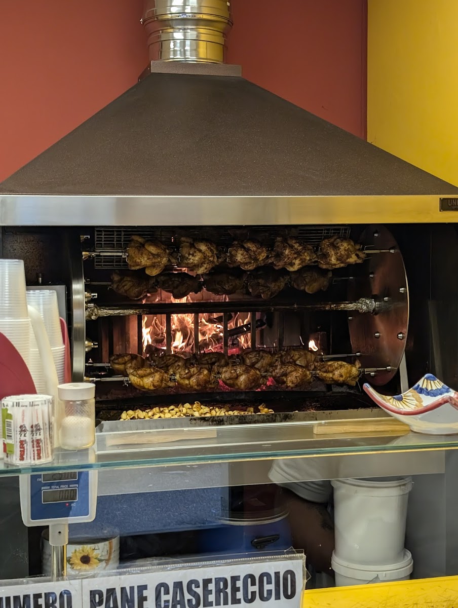 Ormai cliente abituale, questo locale è diventato senza ombra di dubbio il mio punto di riferimento per trovare dei prodotti di rosticceria eccellenti: preparano tutto sul momento, il pollo è cotto egregiamente su un girarrosto a legna che è un bijou vederlo (e mangiarlo) e il salmoriglio che aggiungono al pollo è un incantesimo. Nota particolare di merito agli arancini, filanti, croccanti e ripieni come Dio comanda. Il personale mette allegria, ed è subito palese che lavorano con passione e impegno. La titolare poi è una forza della natura! In dieci minuti mi ha sfornato un pitone (ENORME) ripieno con acciughe e scarola che scoppiava da quanta roba c'era dentro. Assolutamente consigliatissimi!
